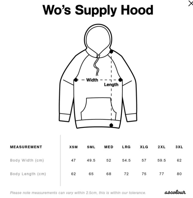 | XS | S | M | L | XL | 2XL | |